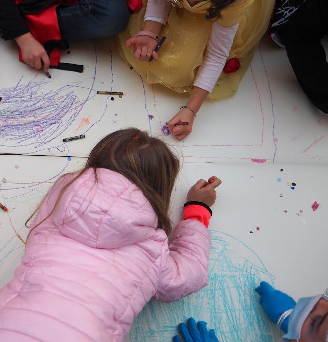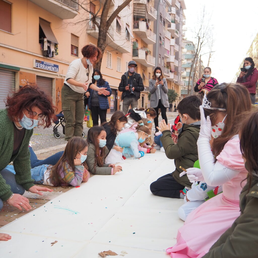 Il movimento del corpo e l’esecuzione grafica si combina, dando spazio alla libera espressione collettiva e creando un contenitore sicuro e protetto in cui poter giocare. Le attività proposte, inizialmente solo ai bambini, si aprono in un secondo momento anche ai genitori, invitati a dialogare con i loro figli attraverso il corpo e i gesti, in maniera ludica e non giudicante. “Isola d’Arte” evento promosso ed organizzato da CSOA Corto Circuito.